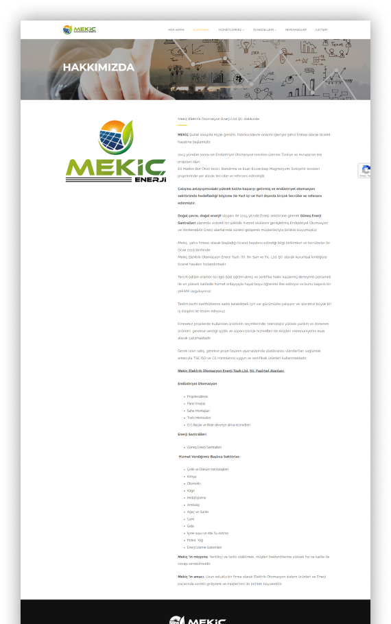 Mekiç Enerji için hazırladığımız web sitesi, firmanın yenilenebilir enerji alanındaki çözümlerini ve hizmetlerini detaylı ve kullanıcı dostu bir yapıda sunan bir platform olarak tasarlandı. Ziyaretçilere, çevre dostu enerji çözümlerine hızlı ve etkili bir şekilde ulaşma imkanı sunarak markanın sürdürülebilirlik hedeflerini vurguluyoruz.