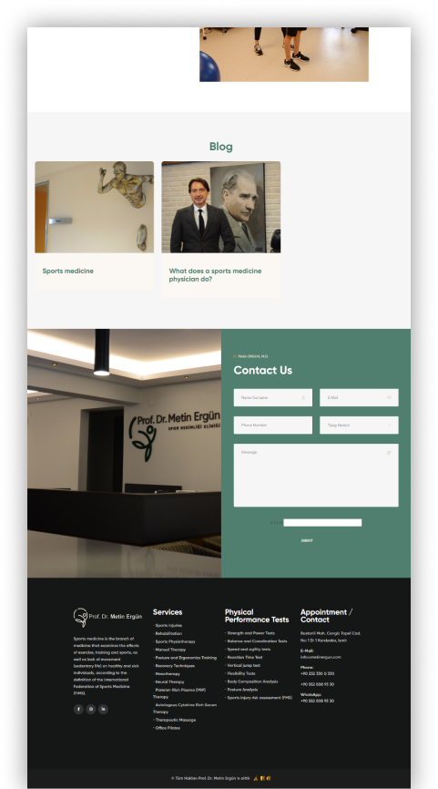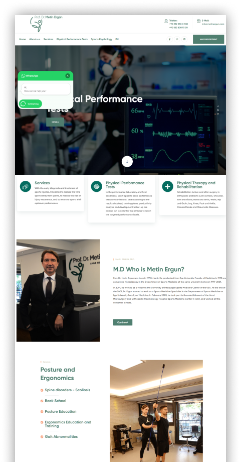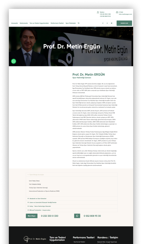 Prof. Dr. Metin Ergün için hazırladığımız web sitesi, hastaların ihtiyaç duyduğu bilgilere kolayca ulaşabilecekleri, sade ve profesyonel bir platform olarak tasarlandı. Spor hekimliği alanındaki uzmanlığı ve deneyimi yansıtan bu site, kullanıcıların tedavi ve hizmet seçenekleri hakkında detaylı bilgi almasını sağlıyor. Her detayı özenle düşünülmüş bu platformla, Prof. Dr. Metin Ergün’ün hasta odaklı yaklaşımını dijital dünyaya taşıdık.