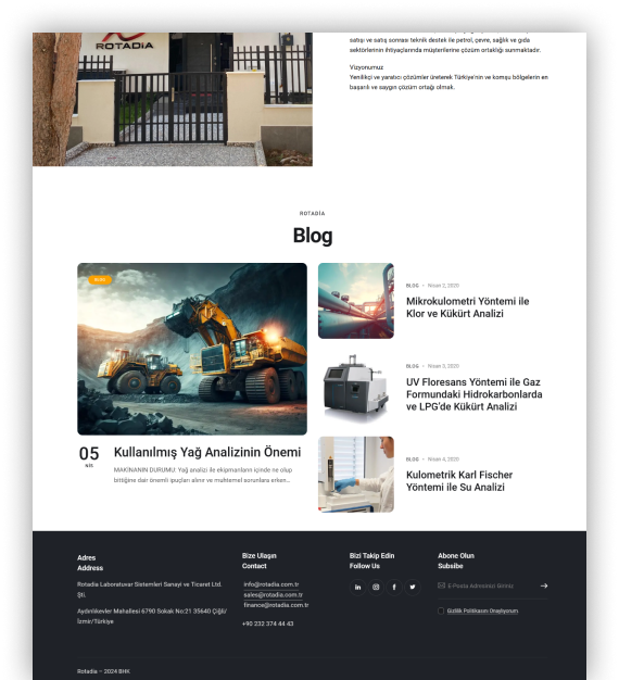 Rotadia için hazırladığımız web sitesi, laboratuvar sistemlerinde sundukları ileri teknolojiyi ve kaliteyi dijital dünyada kullanıcı dostu bir arayüzle yansıttı. Ayrıca, Rotadia’nın operasyonel ihtiyaçlarına uygun olarak özel bir panel yazılımı geliştirerek iş süreçlerini daha verimli hale getirdik.