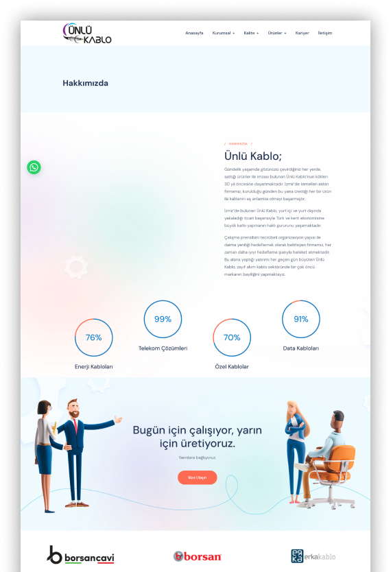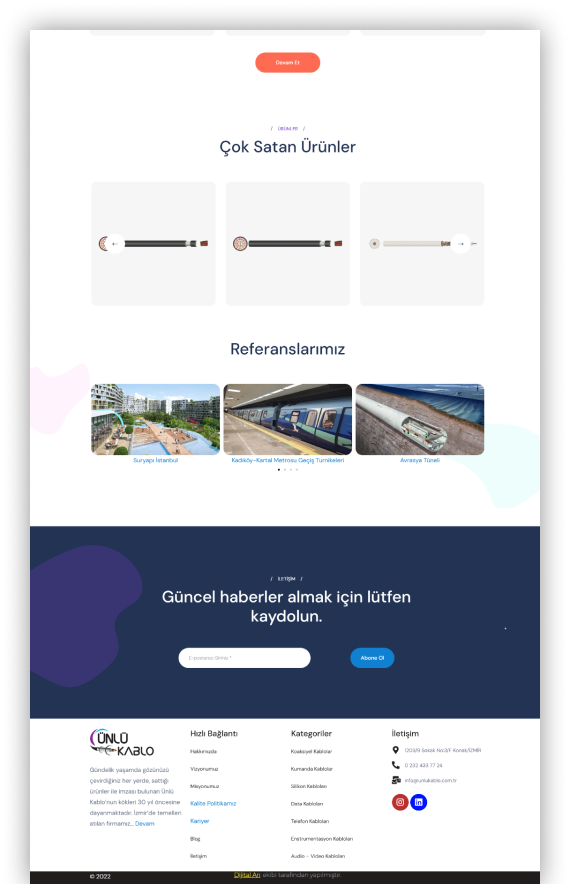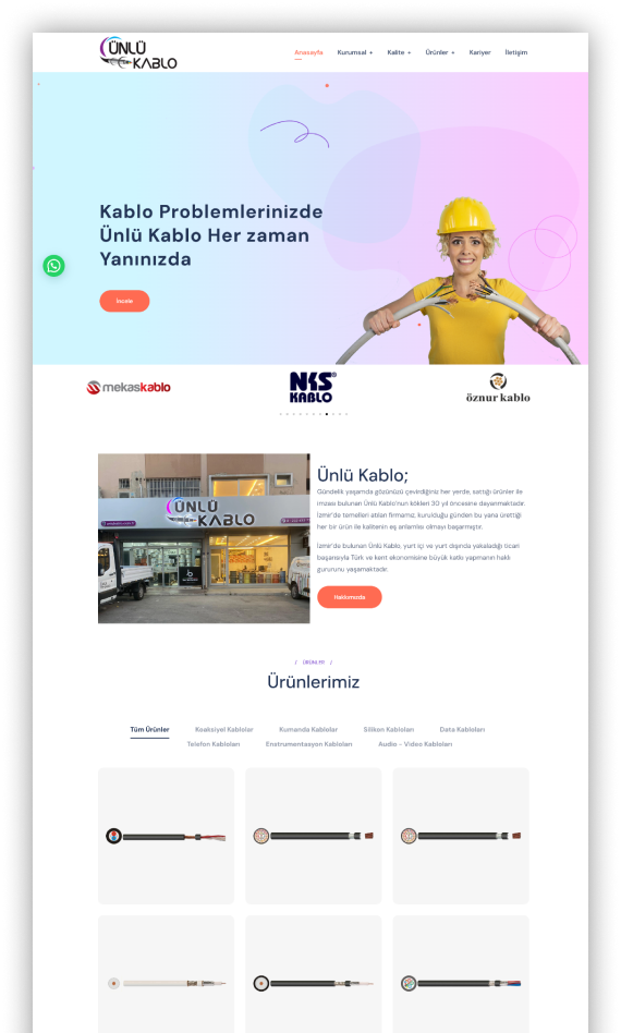 Ünlü Kablo için hazırladığımız web sitesi, firmanın geniş ürün yelpazesini kullanıcı dostu bir platformda sunarak müşterilere kolay ve hızlı erişim sağlıyor. Site, ürünlerin teknik detayları ve kalite standartlarını ön plana çıkararak markanın sektördeki güvenilirliğini yansıtıyor.