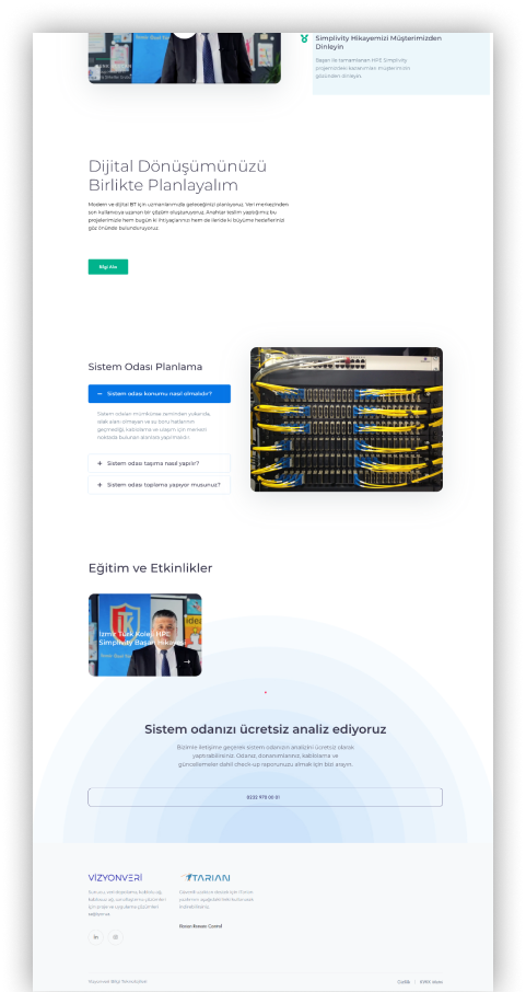 Vizyonveri için hazırladığımız web sitesi, firmanın sunduğu bilgi teknolojileri çözümlerini ve hizmetlerini kullanıcı dostu bir platformda detaylandıran bir yapı olarak tasarlandı. Ziyaretçilere hızlı erişim ve kapsamlı bilgi sunarak Vizyonveri’nin dijital çözümlerini en iyi şekilde yansıttık.